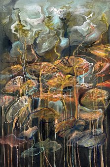 Budou nás zajímat hladiny i hlubiny jezer, vytvořených akrylovou (pod)malbou doplněné o nejrůznější detaily přírodnin a rostlin tvořené těmi nejjemnějšími kresebnými detaily.