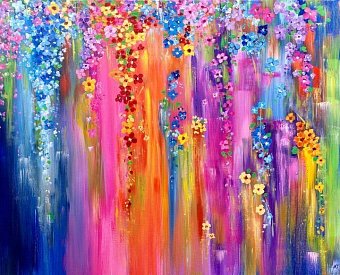 Neonové akrylové barvy jsou rychleschnoucí, vodou ředitelné. Tyto barvy nanášíme různými technikami, jako jsou suchý štětec, mokrý štětec, tečkování, stříkání apod... Pracujeme s nimi stejně jako s normálními akrylovými barvami.